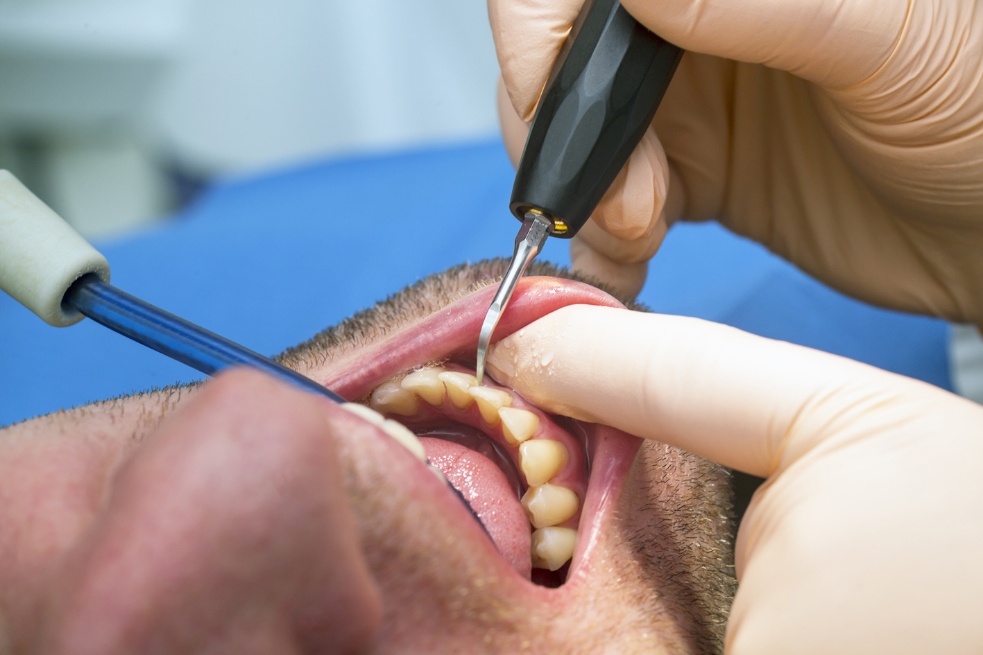 Die Fortsetzung der Zahnreinigung unter dem Zahnfleisch